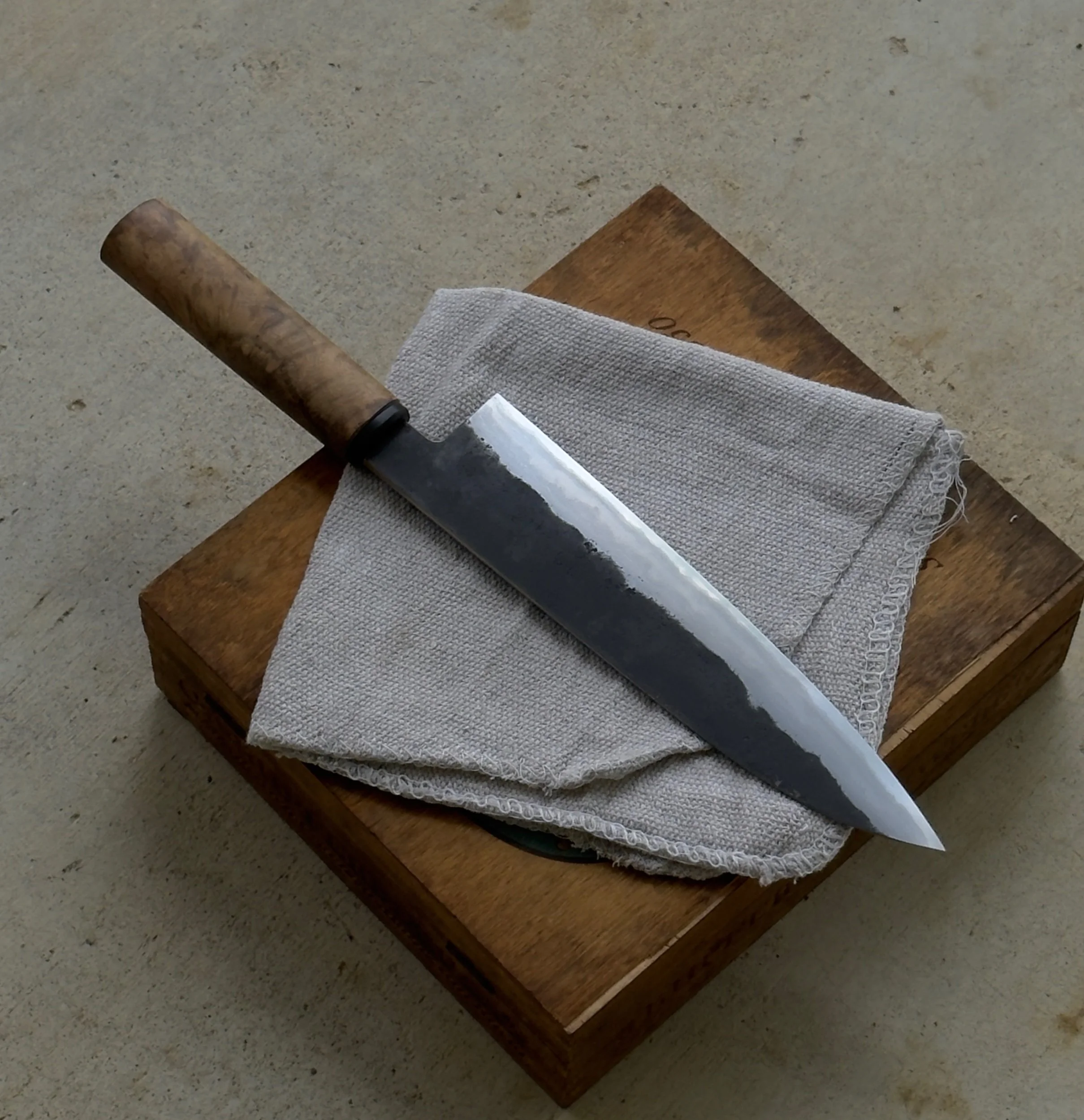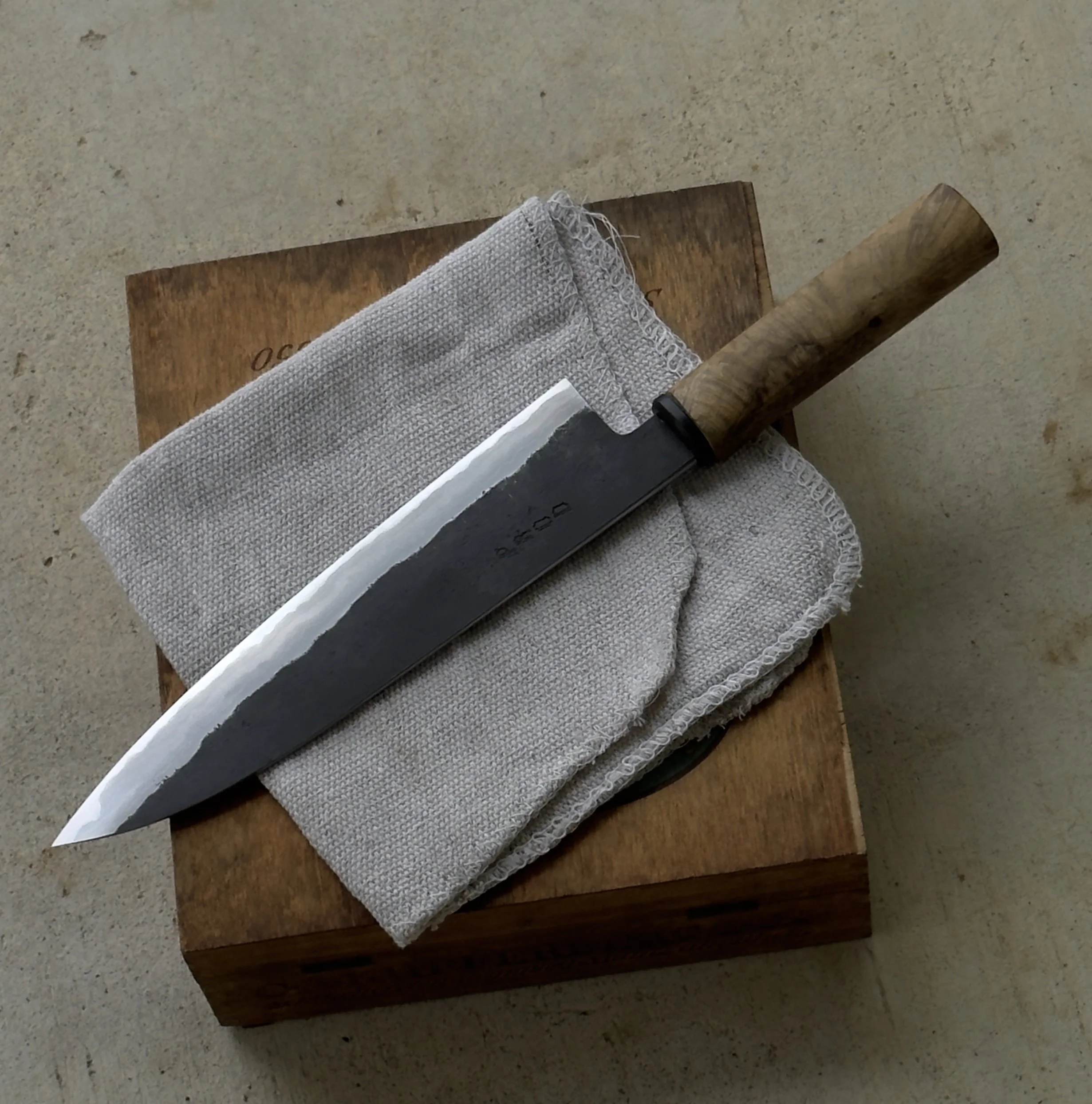 Handle: Oval Wa/Maple Burl & Black Micarta